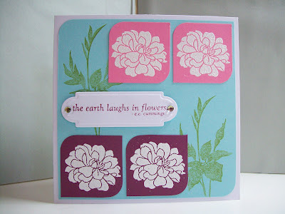 My white flowers have been stamped onto coloured card stock and then heat embossed with white embossing powder.